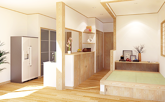 カラダにやさしいくつろぎの家 シックハウスの奥様がすべてにおいて自然素材を選択しました。建具からすべてです。いずれ家族が増えたときに可変性のある間取りにして、柔軟性のある住宅に。120%満足したご夫婦の笑顔がとても印象的でした。