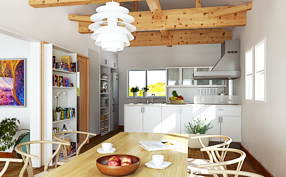 家族の健康を願う安心の家 ご夫婦とお子様2人と犬1匹。実は住みかえは今回3回目。無添加住宅として間取りや収納を充実させたいといった希望をお持ちのご家族でした。奥様は料理教室をしてしまうほど料理好き。オーガニックの料理がより一層引き立ちます。